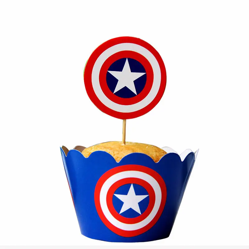 Avengers Cupcake Wrappers Toppers Birthday Party Supplies & Decoration 100% brand new and high quality. Choose from four characters: Batman, Captain America, Spiderman and Superman.