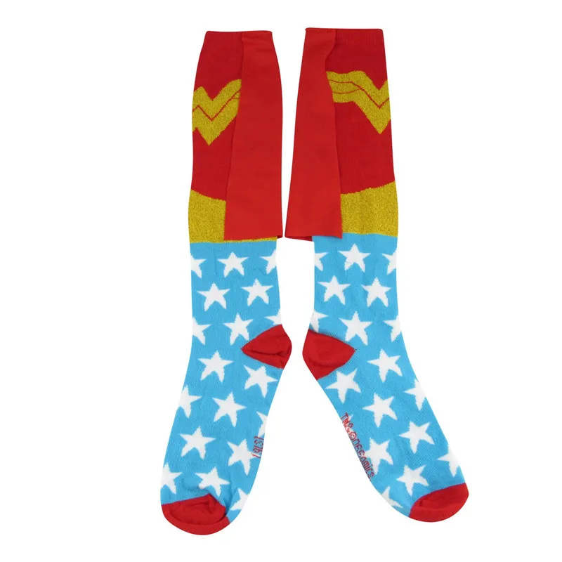 DC Comics Wonder Woman Cape Knee-High Socks Red Blue – Knit on Cape – LARGE